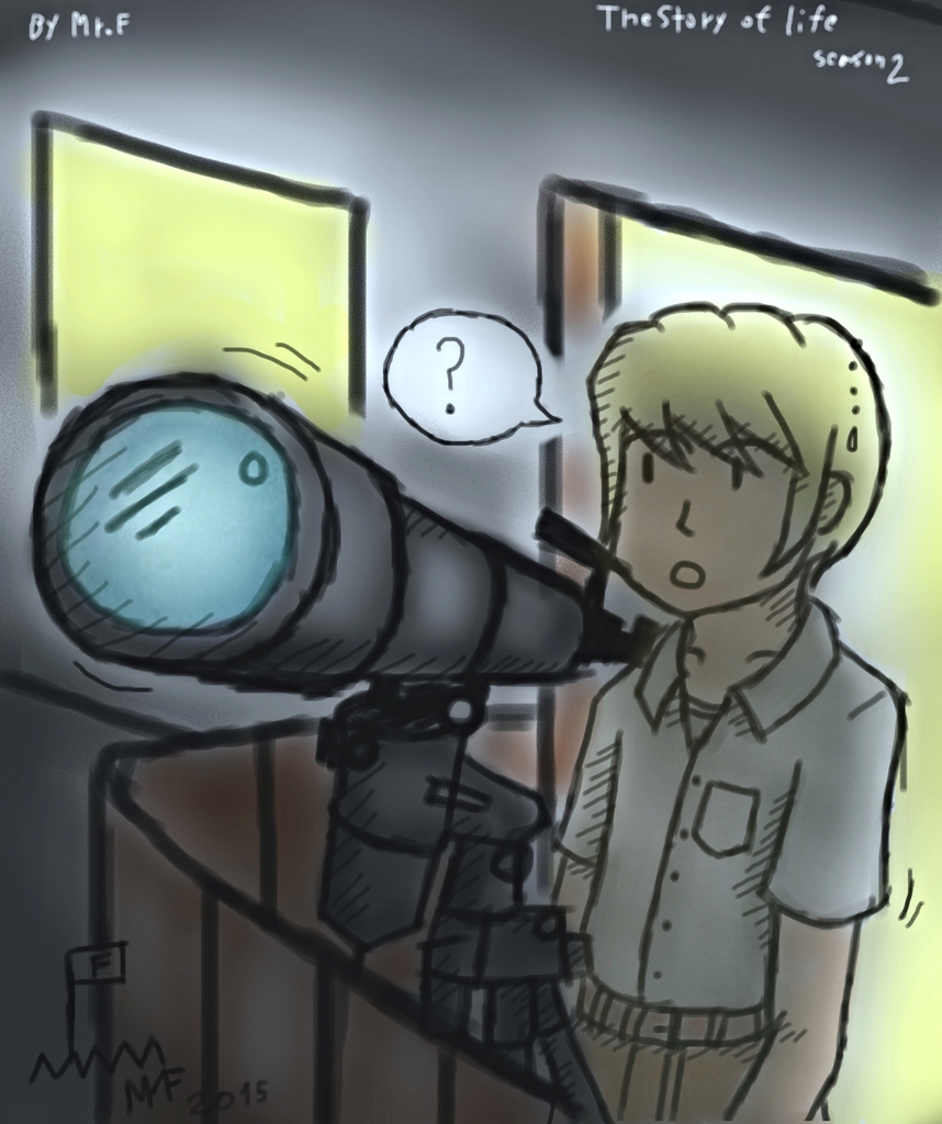 รูปวาดเล่นๆ น ไม่มีอะไรมาก ในรูป คือ New แต่งชุดนักเรียนและกำลังส่องดูดวงดาวที่หน้าต่างโรงเรียนเวลา 20:00 น ในช่วงนั้น เพื่อนของ New กำลังออกไปซื้อของกินอยู่เลยปล่อยให้ New อยู่คนเดียวตามลำพังคนเดียวกับกล้องดูดาว...