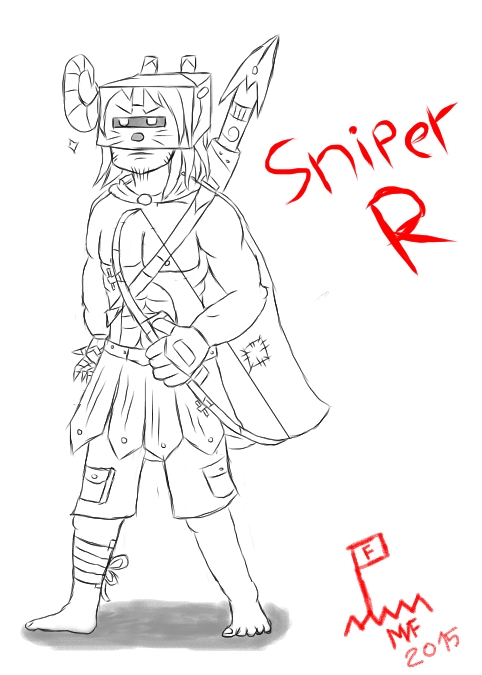 ข้อมูลคราวๆ:เป็นชายมาจากดินแดนที่ยังไม่มีใครสำรวจ บริเวณขั้วโลกเหนือของโลก Sniper R มีชื่อเดิมว่า Rilfullasterเป็นนักรบจากเผ่าปริศนาเผ่าหนึ่งบนโลก เขาถูกไล่ออกจากเผ่าและกองทัพ หลังจากที่เขาแอบไปขโมยเครื่องเล่น Video ของนักสำรวจเพื่อดูการ์ตูน ฟรุงฟริ้ง "แด่พ้องเพื่อนแห่งเวทย์มนต์" เป็นการ์ตูนสาวน้อยเวทย์มนต์ดีๆนี้เอง เขาถูกจับได้และถูกไล่ออกจากทวีปทางขั้วโลกเหนือ Rilfullaster จึงจำเป็นต้องอยู่ชนบทของประเทศ Kenzo Island และปกปิดใบหน้าของเขาตลอดเวลา Sniper Rมีพรสวรรค์ในการใช้ธนูและการโจมตีระยะไกล แถมเขาจะใช้พลังแฝงได้อย่างชำนาญ ภายหลังเขาได้ถูดเชิญให้เขารับตำแหน่ง R จนในที่สุดเป็น Sniper R