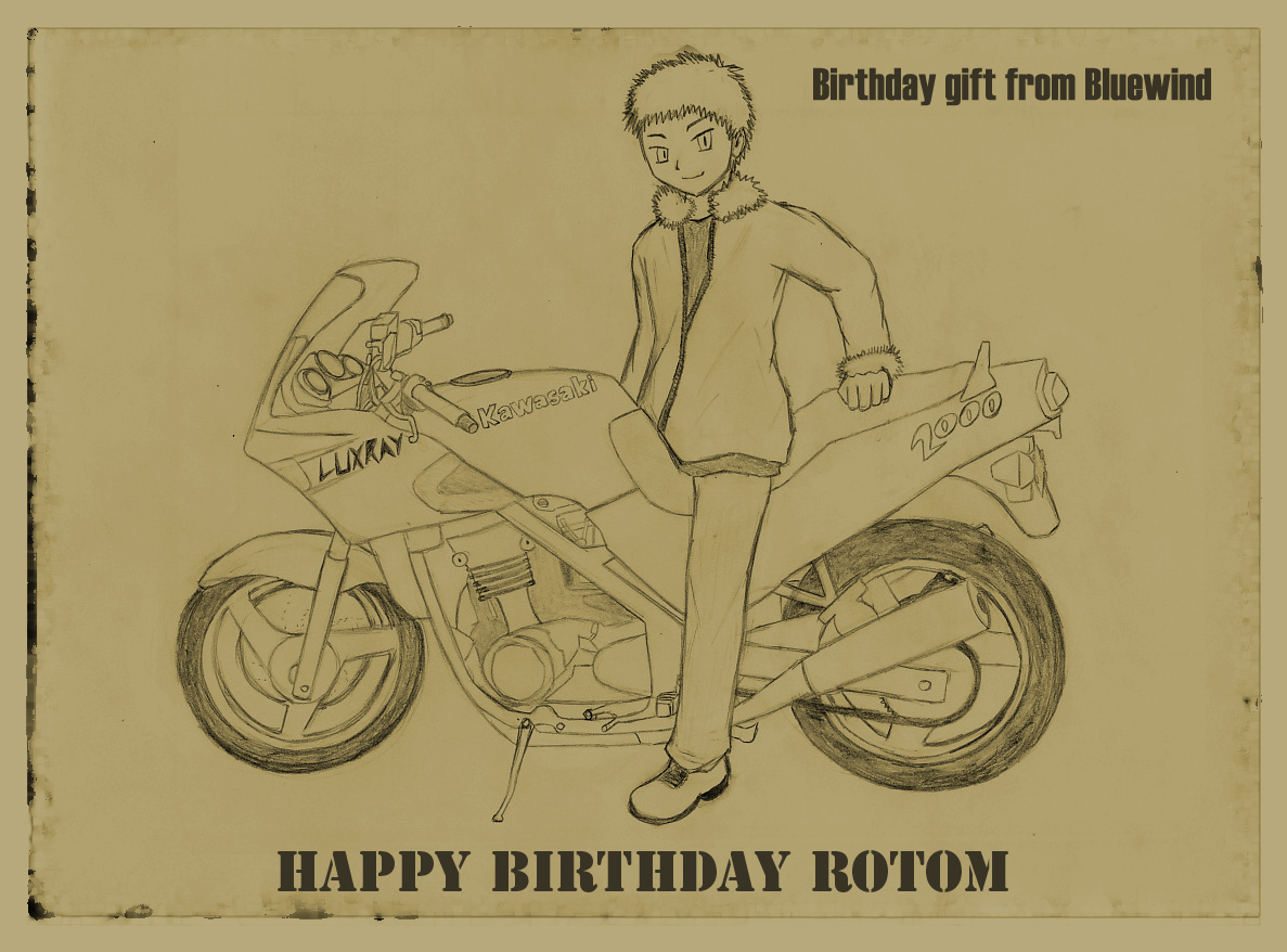 รูปภาพวันเกิดที่วาดให้สมาชิกคนหนึ่งเช่นกันครับ อันนี้ดราฟรูปมอเตอร์ไซค์ด้วย