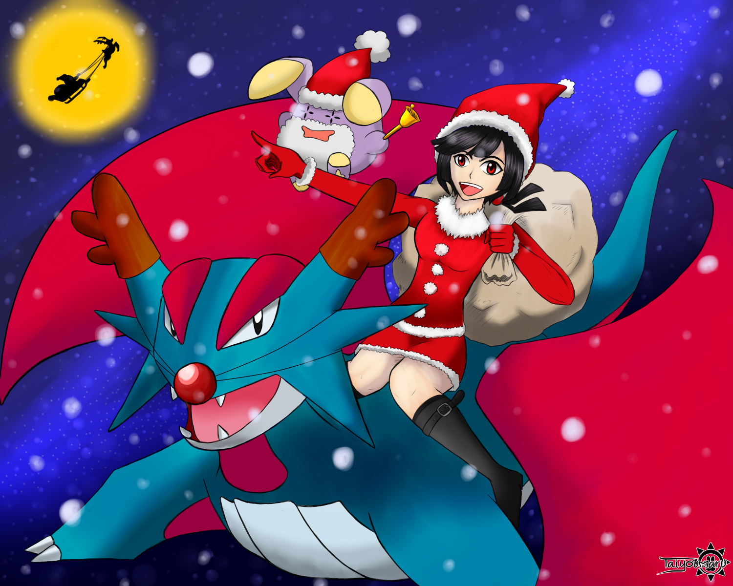 Christmas Zinnia Salamence Whismur Dragon Flying Normal Trainer Fanart Pokemon